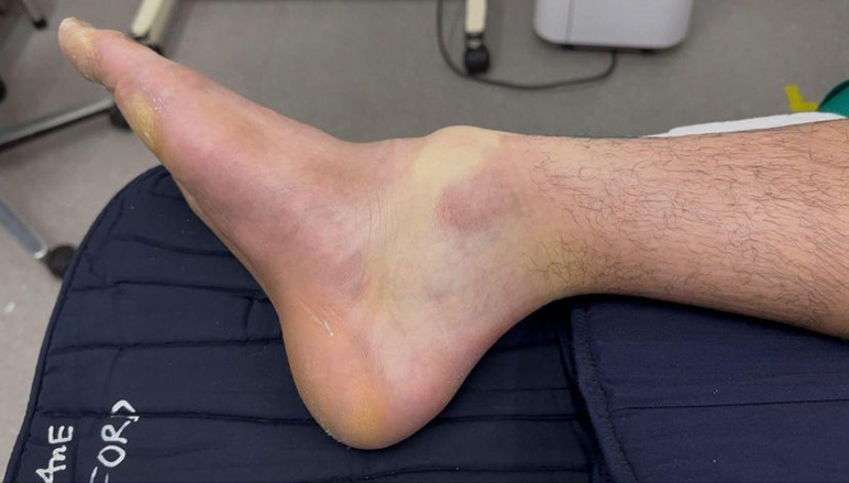 Khi tiếp nhận, BS Nguyễn Tuấn Định (Khoa Chấn thương chỉnh hình, Bệnh viện FV) nhận định bệnh nhân gặp tình trạng gãy – trật cổ chân phức tạp, một dạng chấn thương nặng thường gặp trong các môn di chuyển nhanh và đổi hướng đột ngột.