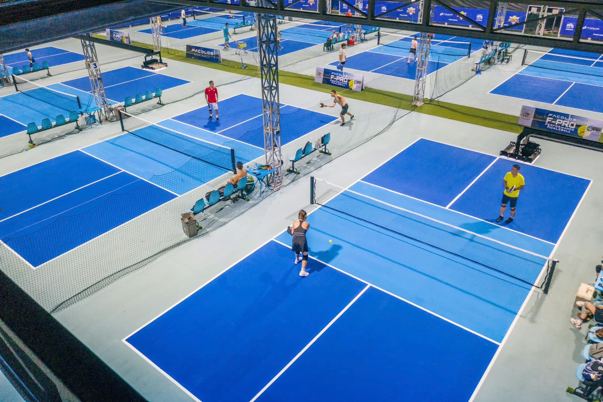 Pickleball Bồ Đề có quy mô 16 sân ngoài trời có mái che di động, mặt sân chất lượng cao, đạt chuẩn thi đấu quốc tế, không gian thoáng mát và rộng rãi. Hệ thống chiếu sáng LED chống chói hiện đại được bố trí trên cao, đảm bảo cung cấp đủ ánh sáng cho cả ngày lẫn đêm. Khu vực nghỉ ngơi được bố trí đầy đủ ghế ngồi tiện lợi, giúp người chơi thư giãn và thoải mái sau khi vận động.